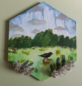 Alongside the written work, Ciara-Rose H created a beautiful art piece using paint and wire to depict the memory of a Ramsey care home resident living with dementia. The resident recalled growing up on a farm and making traps as a small child to catch creatures – “we never hurt them, we just wanted to watch them and be near them”.